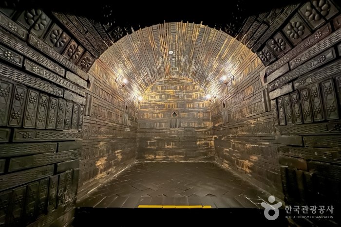 무령왕릉과 왕릉원은 백제 웅진시기(475~538년) 왕들의 무덤이 모여있는 곳입니다. 1∼6호분은 일제강점기 조사로 구조가 밝혀졌고, 무령왕릉은 1971년 보수공사 중 발견되었습니다. 백제 고분은 굴식돌방무덤에서 중국 남조의 영향을 받은 벽돌무덤으로 변화하며, 무령왕릉에서는 국제 교류를 보여주는 다양한 유물이 출토되어 백제의 유물을 볼 수 있습니다. |