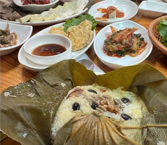 진안 맛집으로 할머니가 해준 밥이 생각나는 집으로 마을의 향토산업 조성마을에서 만든 연잎밥상입니다. |