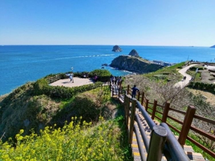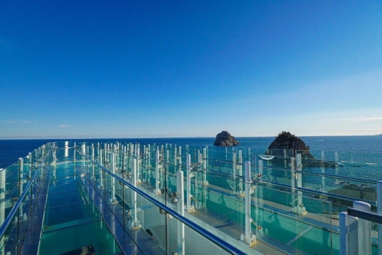 “하늘 위를 걷는다”는 의미를 담은 “오륙도 스카이워크”는 35M 해안절벽 위에 철제빔을 설치하고 그 위에 유리판 24개를 말발굽형으로 이어놓은 15M의 유리다리입니다. 발아래 투명유리를 통해 파도가 절벽을 때리는 모습은 현기증이 날 정도로 아찔함을 느끼게 합니다. 스카이워크 앞에 펼쳐진 바다는 시시때때로 아름답고 다채로운 색상을 연출하고 있어 사진촬영의 명소이며, 날씨가 좋은 날에는 대마도를 가장 가까이 볼 수 있는 곳이다. |