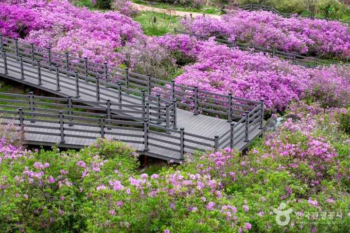 이곳에 자생하는 철쭉은 산 철쭉으로, 일반적인 철쭉이나 진달래와 구별되는 대표적인 한반도 자생종으로 군립공원의 자연경관과 문화체험이 어우러진 봄철 관광 명소로 자리매김하고 있습니다.