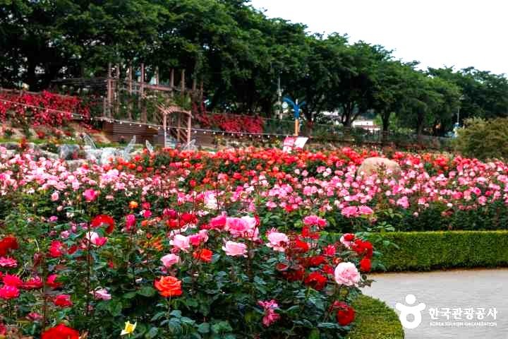 삼척시 정상동 오십천 일원 8만5000㎡ 규모에 조성된 삼척 장미공원에는 총 218종 13만 그루 1천만 송이의 장미가 단일 규모로는 세계 최대 수량을 가진 공원으로 아름다운 장관을 이루고 있으며, 야간에는 장미꽃 군락이 조명과 어우러져 환상적인 분위기를 연출합니다. |
