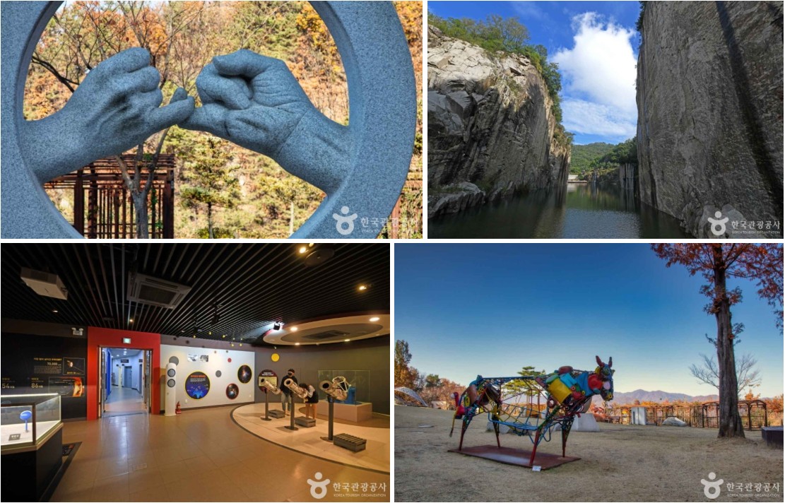 그림 같은 에메랄드빛 천주호 호수, 그 위를 병풍처럼 깎아지른 화강암 절벽! 자연 속에서 예술을 감상하고 즐길 수 있는 복합문화예술공간인 포천아트밸리는 폐채석장을 재탄생 시킨 곳으로 자연과 예술이 함께하는 힐링의 명소로 완전히 탈바꿈하였습니다. 특히 2014년부터는 밤하늘에 별을 감상할 수 있는 천문과학관이 개관되어 아이들에게는 체험교육의 명소로, 연인들에게는 데이트코스로 큰 인기를 누리고 있습니다. |