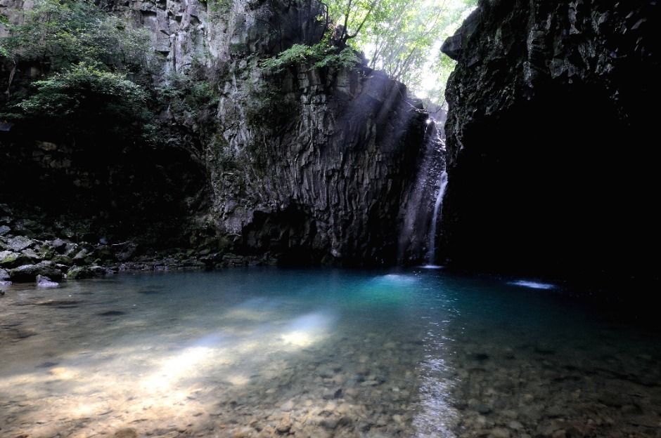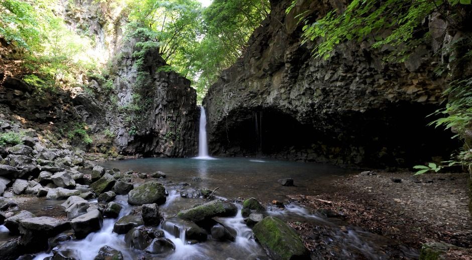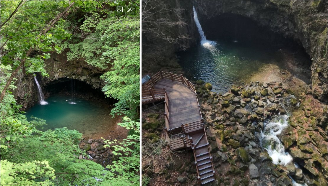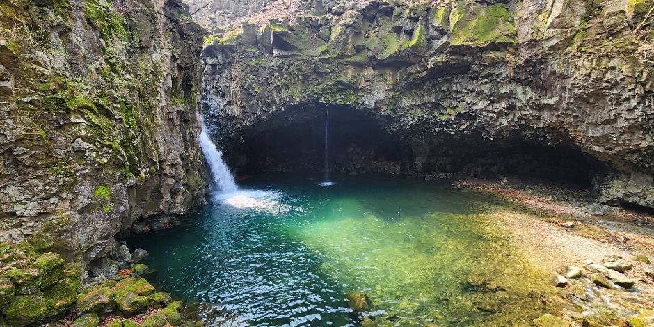 비둘기낭 폭포는 현무암 침식 협곡으로 비둘기낭이란 이름은 주변 지형이 비둘기 둥지처럼 움푹 들어간 주머니 모양을 하고 있다고 하여 비둘기낭 폭포라 부릅니다. 또 다른 설은 예전부터 양비둘기가 폭포 주변의 동굴에 서식하고 있다고 하여 비둘기낭이라 불린다고 전해지는데 예전 6·25 전쟁 당시에는 수풀이 우거지고 외부에 잘 드러나지 않아 마을주민의 대피시설로도 사용되었고, 군인들의 휴양지로도 사용되었다고 합니다. | |