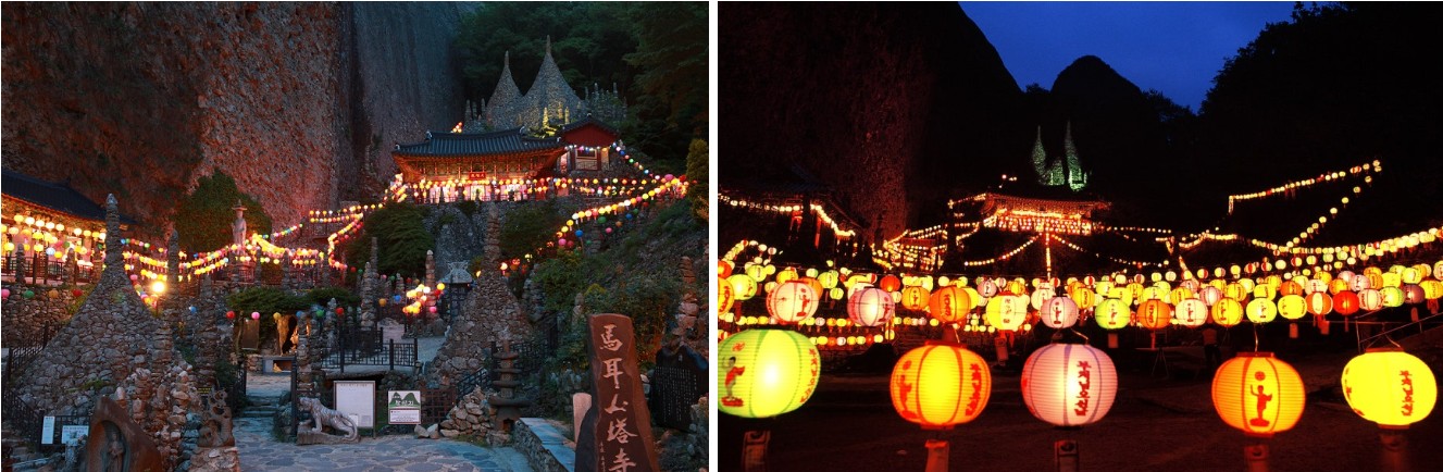 |  진안 | 10:00 | 진안 마이산 탑사와 가을 단풍여행 마이산은 신라시대와 조선시대 때는 다른 이름으로 불리었다가, 태조 이성계가 산을 보고 시를 남겼는데, 훗날 태종이 진안을 지나가면서 태조의 시를 보고 이름을 짓게 되어 ‘마이산’으로 불리며 오늘날에 이르고 있습니다. 말 ‘마(馬)’ 자와 귀 ‘이(耳)’ 자를 붙인 이름으로, 20m 간격으로 솟은 두 봉우리가 마치 말의 귀처럼 생겼기 때문입니다. 동쪽의 봉우리는 수마이봉, 서쪽의 봉우리는 암마이봉이라 불립니다. 태종의 시 「동으로 달리는 천마는 이미 지쳤는가 갈 길은 먼데 그만 쓰러지고 말았구나 연인은 몸통만 가져가고 두 귀는 남겼는가 두 봉우리 이루고 하늘로 솟아있네」 |