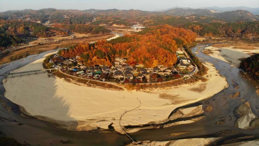 옛 선비의 숨결을 느낄 수 있는 마을로 물 위에 떠 있는 섬, ‘물수리’의 우리말 이름을 가진 전통마을입니다. 40여 가구의 전통가옥이 마을을 이루고 있는데 이 중 30여 채가 조선 후기 사대부가 가옥이며, 역사가 100여 년이 넘는 가옥도 16채나 남아있어 조상들의 자취를 그대로 느낄 수 있습니다. 그리고 30여 년 전까지 마을과 외부를 이어주는 유일한 통로였던 외나무다리가 마을의 대표 상징물입니다. |