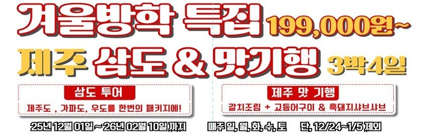 겨울 한정 제주도 삼도&맛기행 3박4일| · 여행기간 | 3박 4일 |