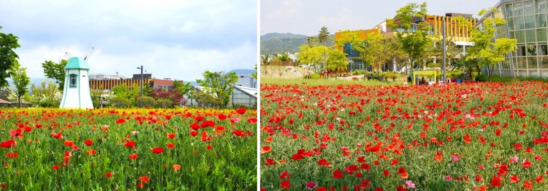 청주농업기술센터는 청주의 농업 기술 연구와 교육을 담당하는 공공기관으로, 계절별 작물 전시와 실습 농원, 정원 공간이 잘 조성되어 있어 자연을 느끼며 여유롭게 둘러보기 좋은 장소입니다. 특히 봄·가을에는 꽃과 식물이 어우러진 산책 코스로 인기가 높아 짧은 일정 속 힐링 코스로 방문하기에 알맞습니다. 유채꽃, 이팝나무꽃, 양귀비꽃 밭 |