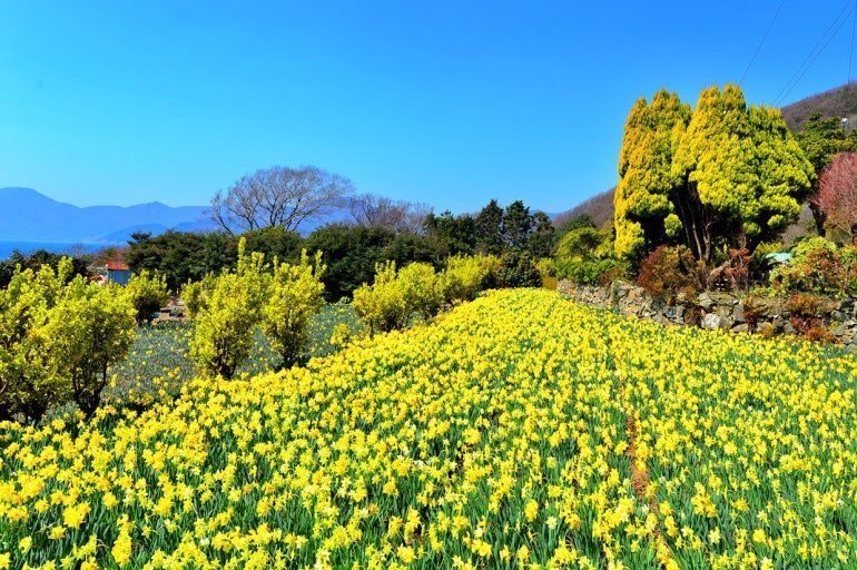 공곶이는 지형이 궁둥이처럼 튀어나왔다고 해서 ‘공곶이’라고 불리며, 계단식 농원으로 수선화와 동백나무가 있습니다. 공곶이 아래에 있는 몽돌해변에서는 한려수도의 아름다운 자연경관을 감상할 수 있습니다. 영화 ‘종려나무 숲’의 촬영지이며, 거제시가 지정한 ‘거제 9경’ 중 한 곳이기도 하며, 수선화와 유채꽃이 만발할때 더욱 아름다운 곳입니다. |